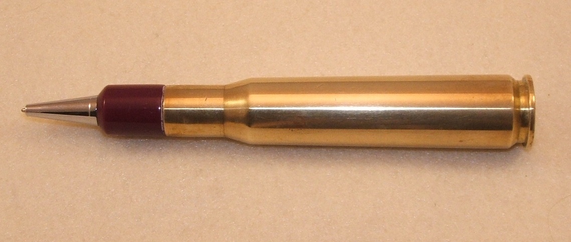 The .50 BMG pens, 300 Winchester Magnum pens, and 30-06 pens are approximately 5 1/2" long. The 300 Winchester Short Magnum pens, 30-30 pens, and .308 pens are approximately 5" long. The slimline pens are approximately 5 1/4" long.