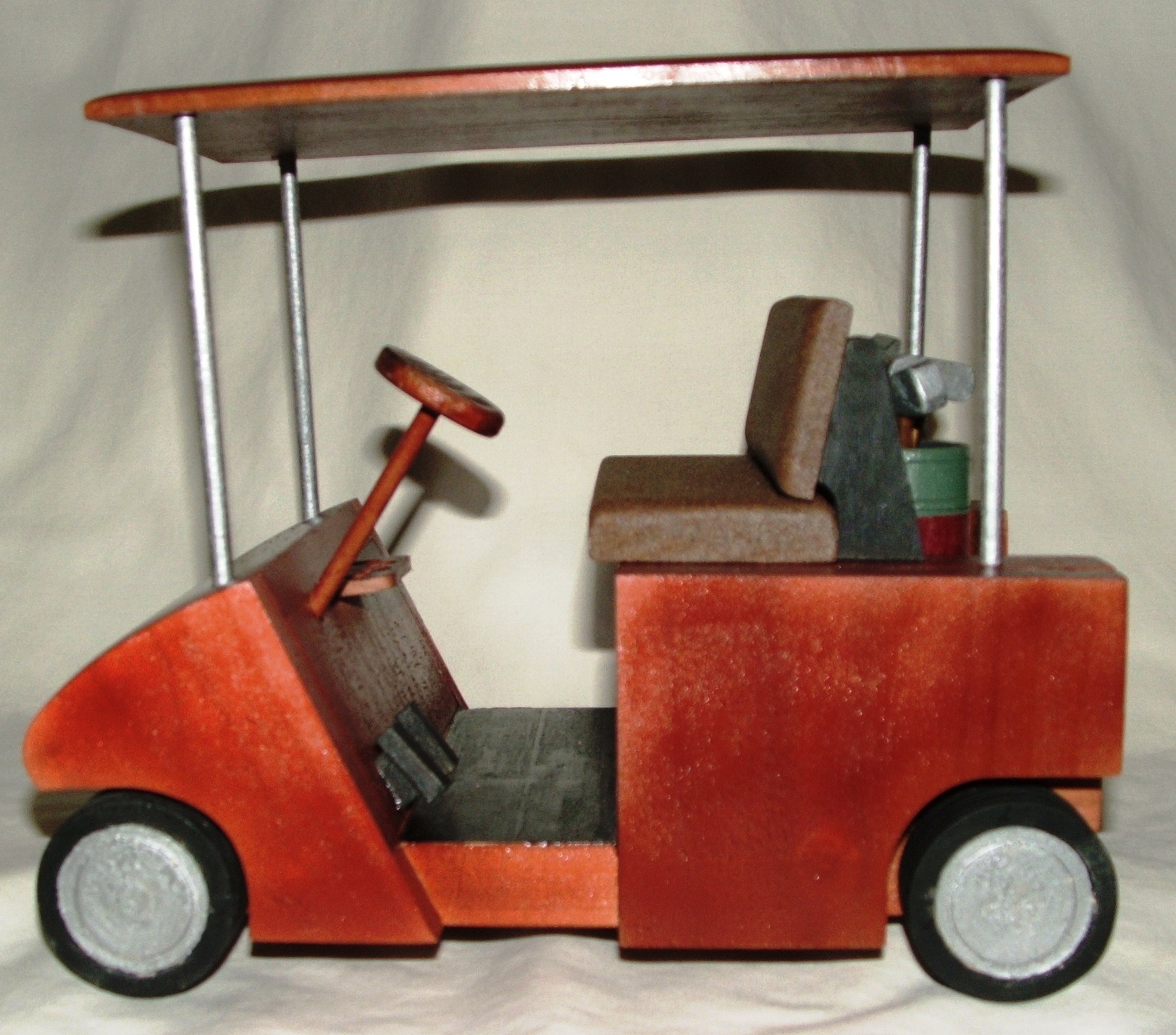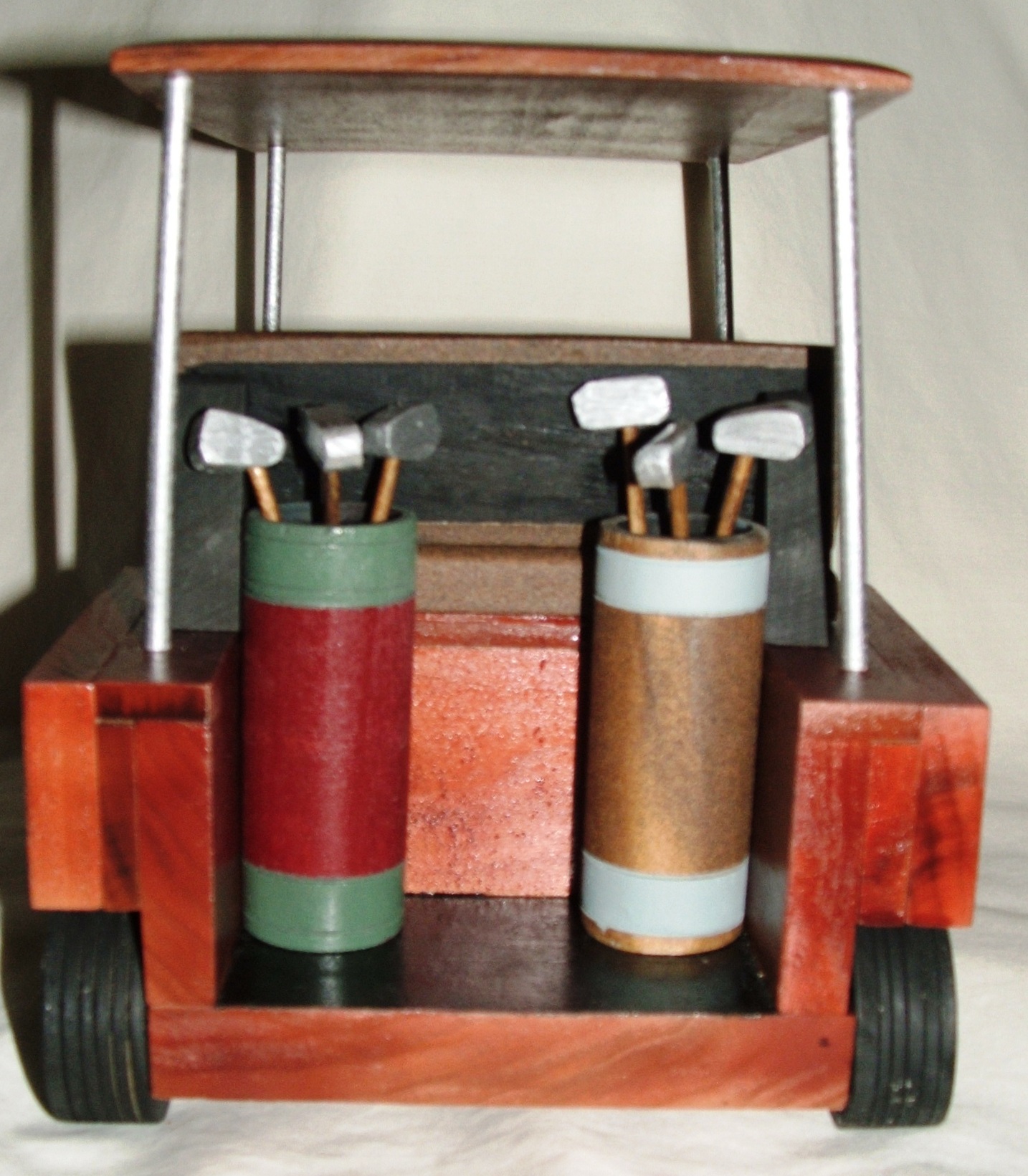 A very good friend of mine wanted to give his brother a special, personal gift for his birthday. His brother is an avid golfer, so I made a miniature golf cart for him.